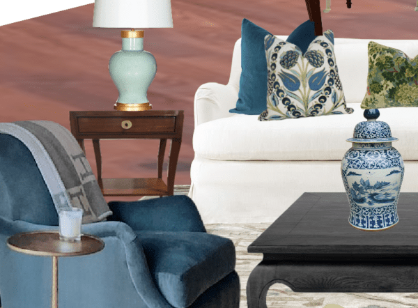 Above is the furniture from Cher’s current home that she’s bringing over to her fiance’s home. The walls are beige. Cher says she loves this color. What strikes me immediately is there is an overwhelming amount of mid-tone colors, giving this room somewhat of a one-note feeling. No worries. This is a common issue. Even a lot of professionals decorate with one-note schemes.