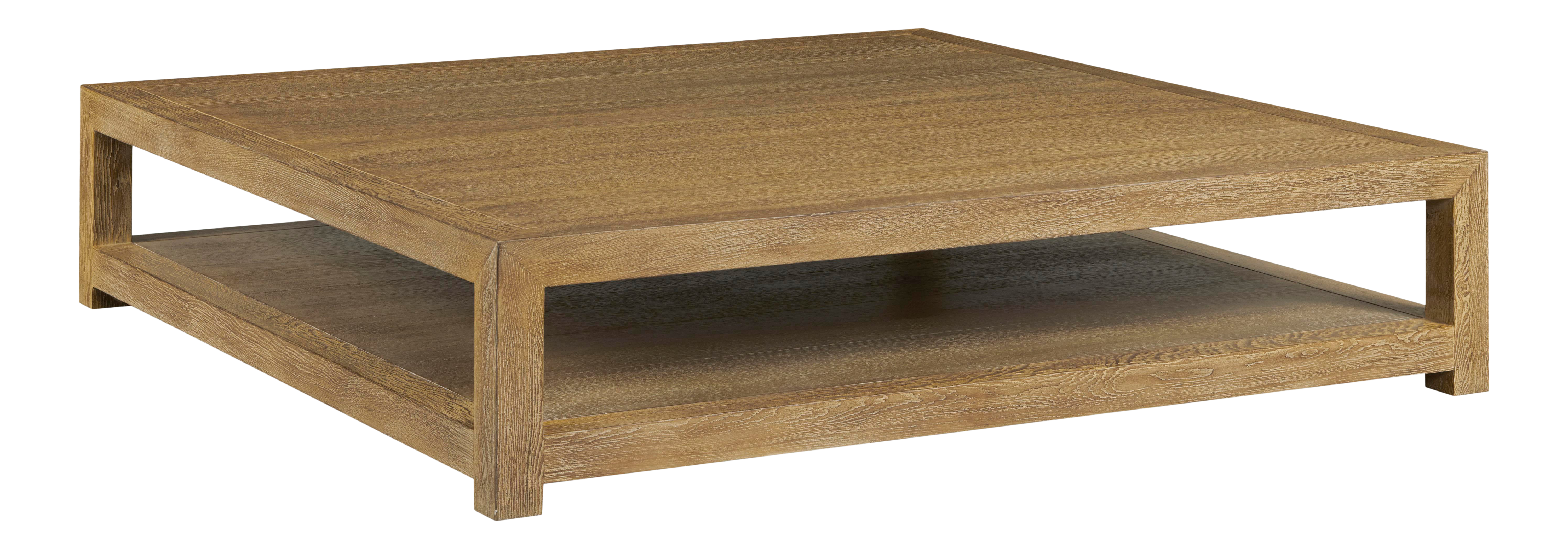If you had a large seating area with a deep room, you could do this stunning 60″ square but low coffee table from Century Furniture.