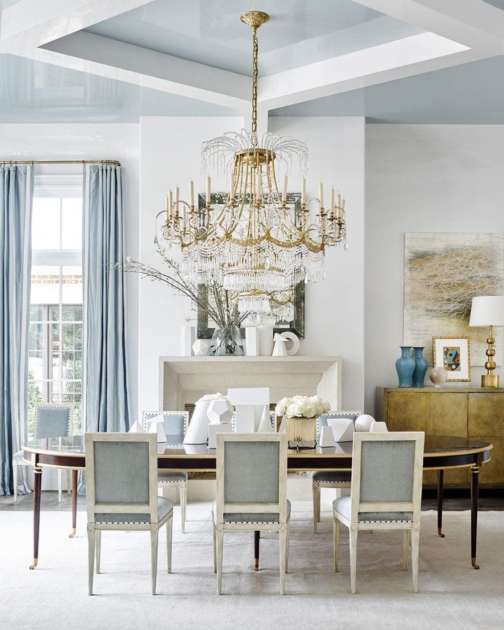 Above is an exquisite entry to an award-winning home by Suzanne Kasler. Suzanne, one of my favorite interior designers, is the queen of pale, watery ethereal light blue wall colors. And, BTW, I’ve met her a couple of times, and she’s exceedingly lovely and humble.